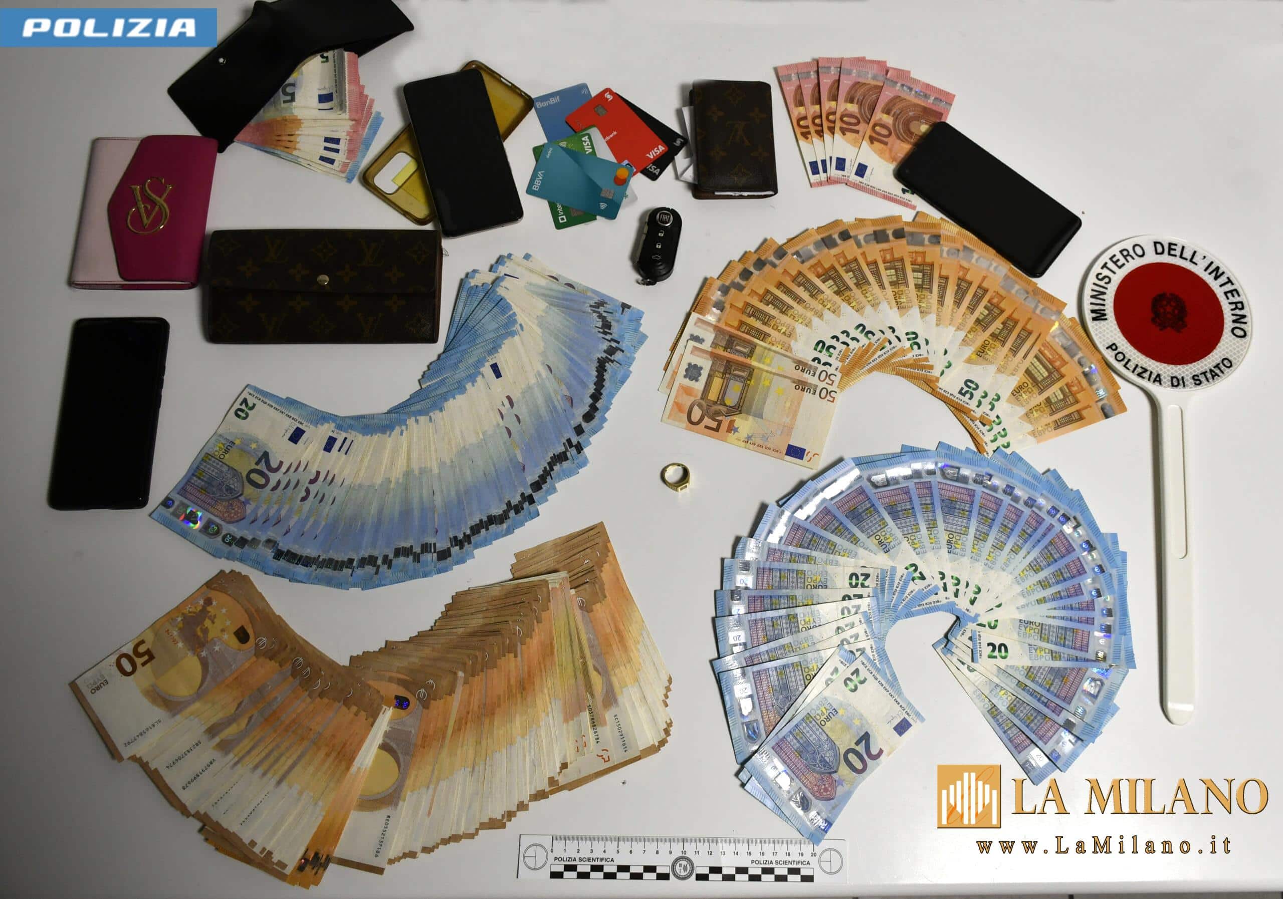 Nel pomeriggio del giorno dopo l’auto in uso agli indagati veniva individuata in entrata nella città di Pordenone e pertanto i 2 Uffici investigativi davano inizio ad un servizio di pedinamento congiunto. I due ladri si recavano inizialmente ad un supermercato del centro, dove dopo la loro uscita, veniva segnalato un furto ai danni di una donna. Appena usciti dal negozio i due peruviani venivano fermati dagli agenti: la donna veniva trovata in possesso del portamonete di proprietà di una signora di 84 anni, borseggiata poco prima all’interno dello stesso esercizio commerciale. La successiva perquisizione del veicolo in uso ai due soggetti dava modo di rinvenire e sequestrare la somma 13.789€ di vario taglio che gli indagati non erano in grado di giustificare e 7 carte di credito/debito, alcune intestate ai vari alias dell’uomo